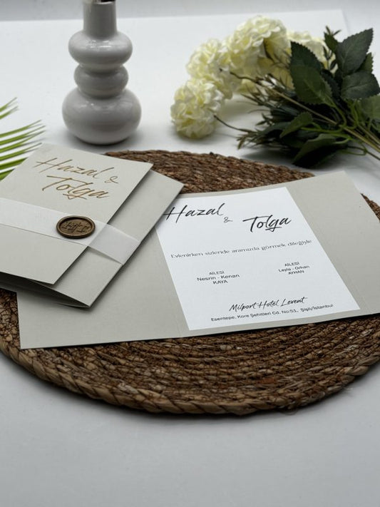 Özel mühür detaylarıyla süslenen mühürlü düğün davetiyelerimiz, davetiyenize asil ve benzersiz bir hava katar. Klasik veya modern tarzdaki mühür seçeneklerimizle fark yaratabilirsiniz.