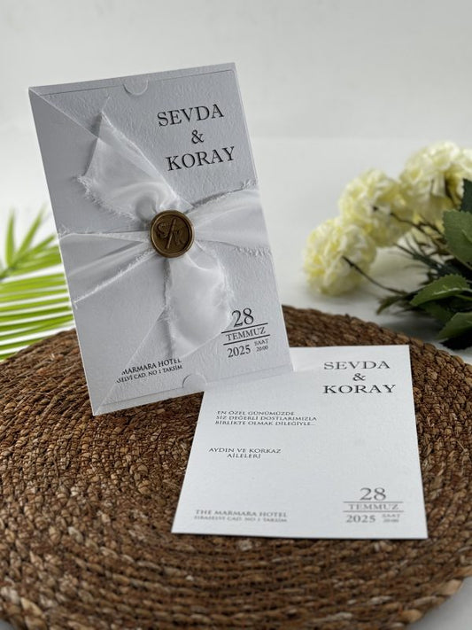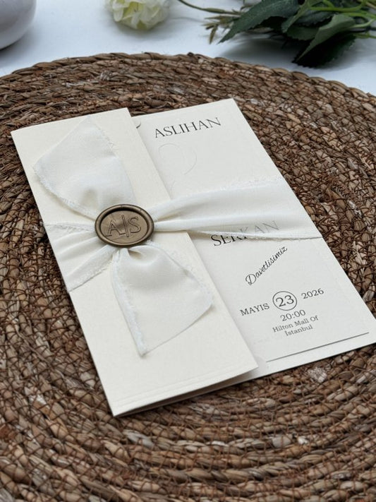 Özel mühür detaylarıyla süslenen mühürlü düğün davetiyelerimiz, davetiyenize asil ve benzersiz bir hava katar. Klasik veya modern tarzdaki mühür seçeneklerimizle fark yaratabilirsiniz.