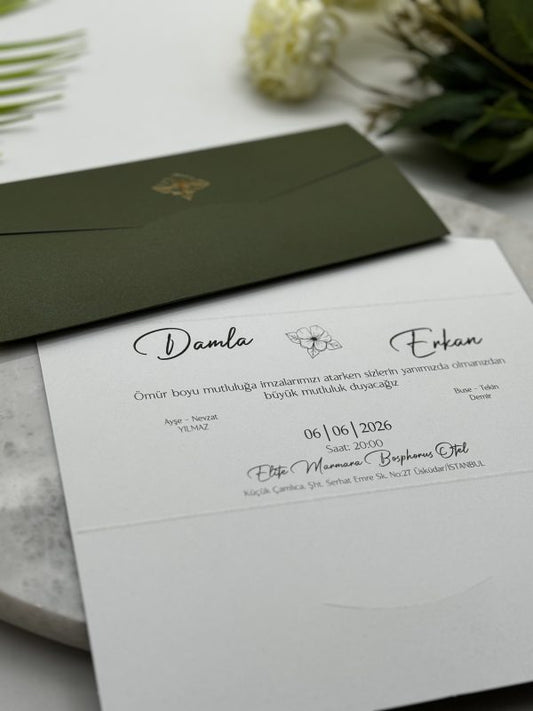 Zamansız ve geleneksel bir dokunuş arıyorsanız, klasik düğün davetiyelerimiz mükemmel bir tercih. İnce detaylarla süslenmiş, şıklığı ve zarafeti yansıtan bu davetiyeler, düğün gününüzü unutulmaz kılacak.