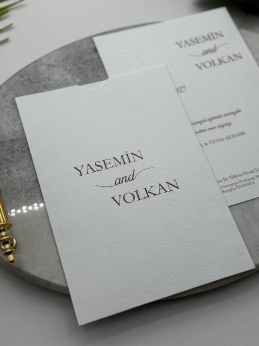 Altın ve gümüş varaklı düğün davetiyeleri, lüksü ve ihtişamı temsil eder. Gösterişli ve sofistike tasarımlarımızla davetiyeniz parlayacak ve unutulmaz bir izlenim bırakacaktır.