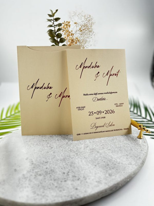 Zamansız ve geleneksel bir dokunuş arıyorsanız, klasik düğün davetiyelerimiz mükemmel bir tercih. İnce detaylarla süslenmiş, şıklığı ve zarafeti yansıtan bu davetiyeler, düğün gününüzü unutulmaz kılacak.