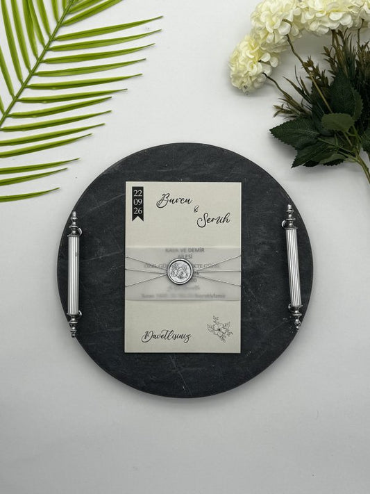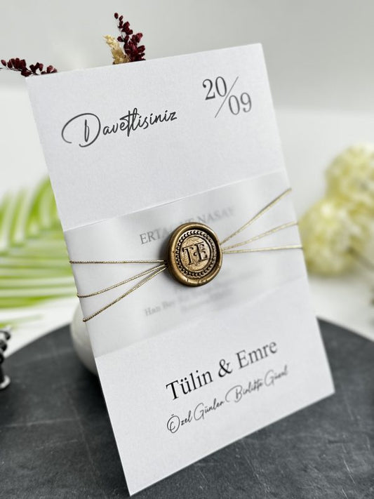 Özel mühür detaylarıyla süslenen mühürlü düğün davetiyelerimiz, davetiyenize asil ve benzersiz bir hava katar. Klasik veya modern tarzdaki mühür seçeneklerimizle fark yaratabilirsiniz.