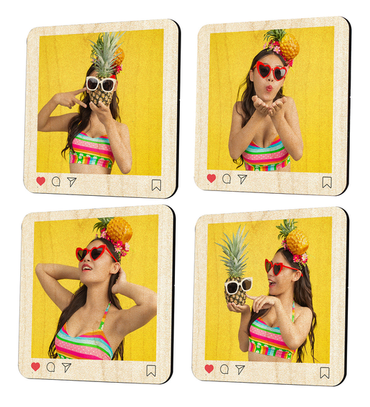 Kişiye Özel Fotoğraf Baskılı Ahşap Mdf 4'lü Bardak Altlığı